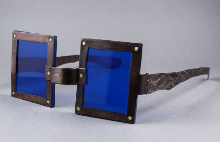 This pair of glasses gave me the most trouble, designing where rivets should go was definitely a learning experience. Riveting along with making hinges gave me a struggle wit this piece and I’ve gained a bit more of an understanding of how they work. Moving to the looks of the glasses I created a texture on the arms by etching the word perfect over and over. The center nose piece says “no.” as well, these glasses are based of the idea of someone always telling you that you are perfect, therefore causing more pressure to be so. I do not want to be perfect and do not strive to be, so being stubbornly told that I am makes me feel like the person is not actually seeing who I am. Hence the colored frames and the choice of glasses in general, eyes are windows to the soul and they are being shaded by the false expectations.
